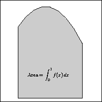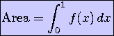 $$ \hbox{Area} = \int_{0}^{1} f(x) \, dx $$